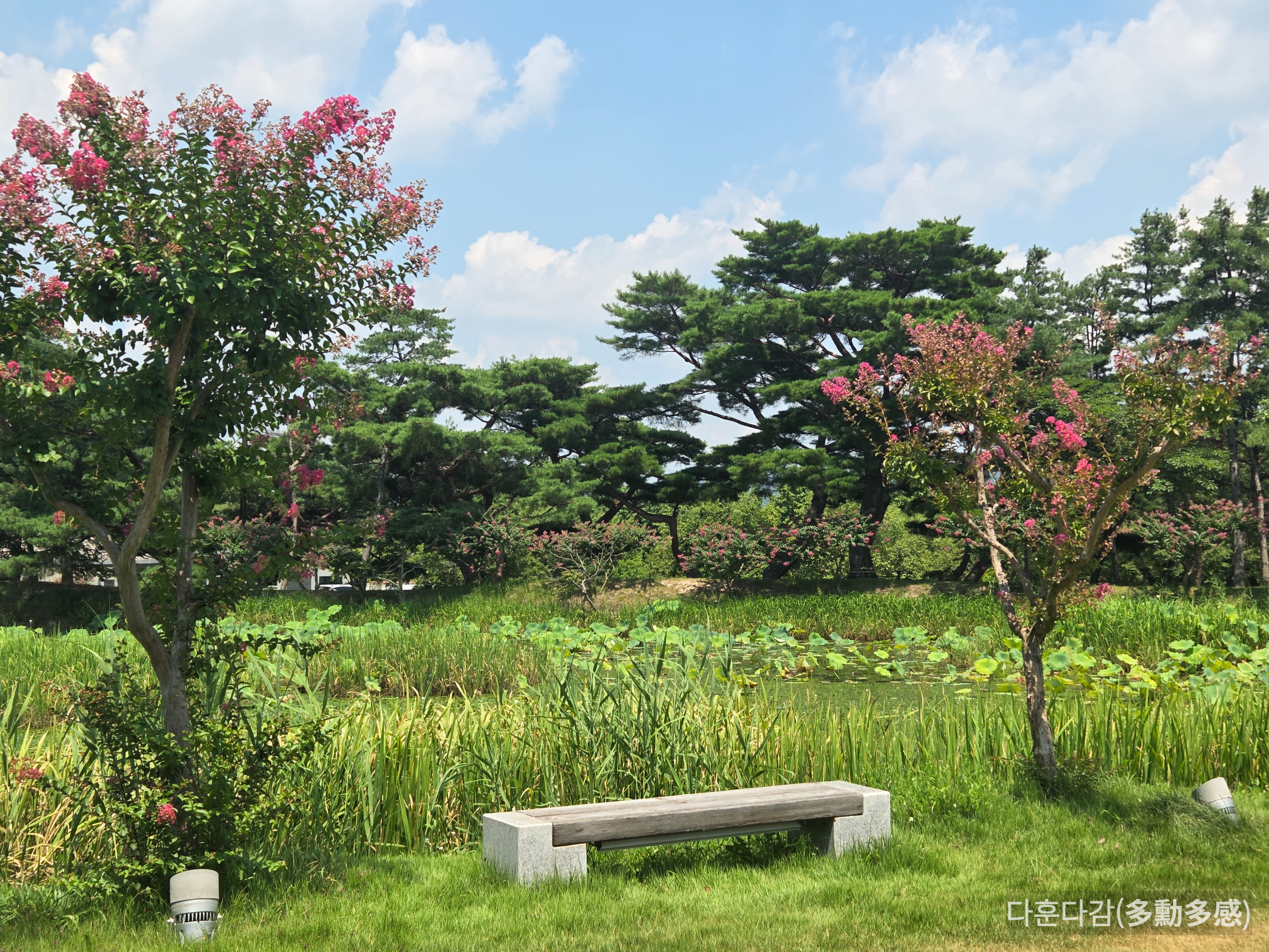 작은 연못을 둘러 벤치가 있고, 배롱나무꽃이 심어져있습니다. 연못에는 연꽃이 있어 여름철이 가장 아름다운 곳인 것 같습니다.