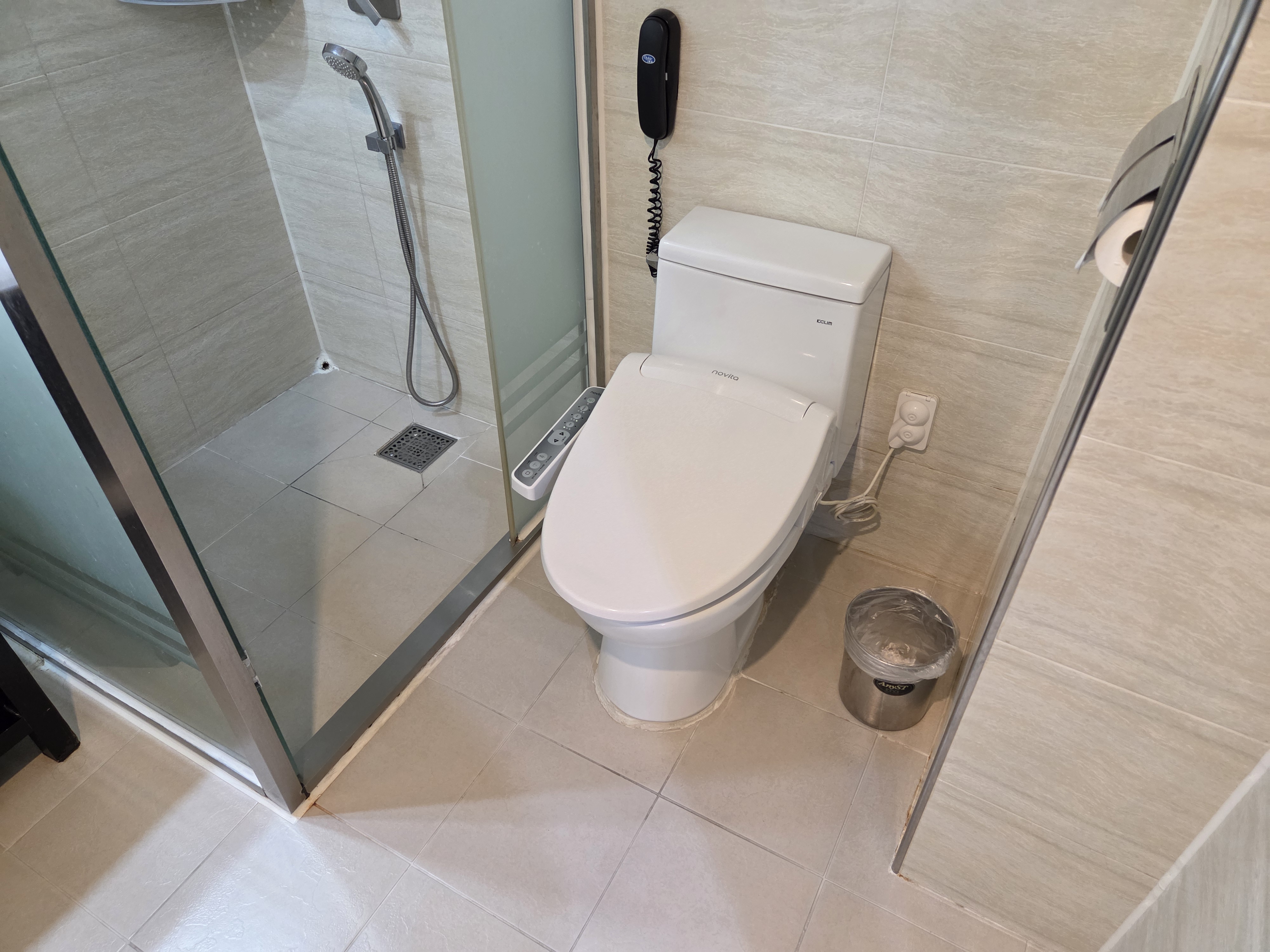 욕실이 꽤 넓은 편인데요, 넓기는 하나 확실히 오래된 느낌이 가장 많이 나는 곳이였습니다. 그래도 하루 이틀 머무르기에는 적당했습니다. 조심하면 덜 하겠지만 샤워를 하고나니 샤워부스 밖으로 물이 다 나와서 처음부터 수건을 하나 깔고 샤워를 하시면 좋을 것 같습니다.