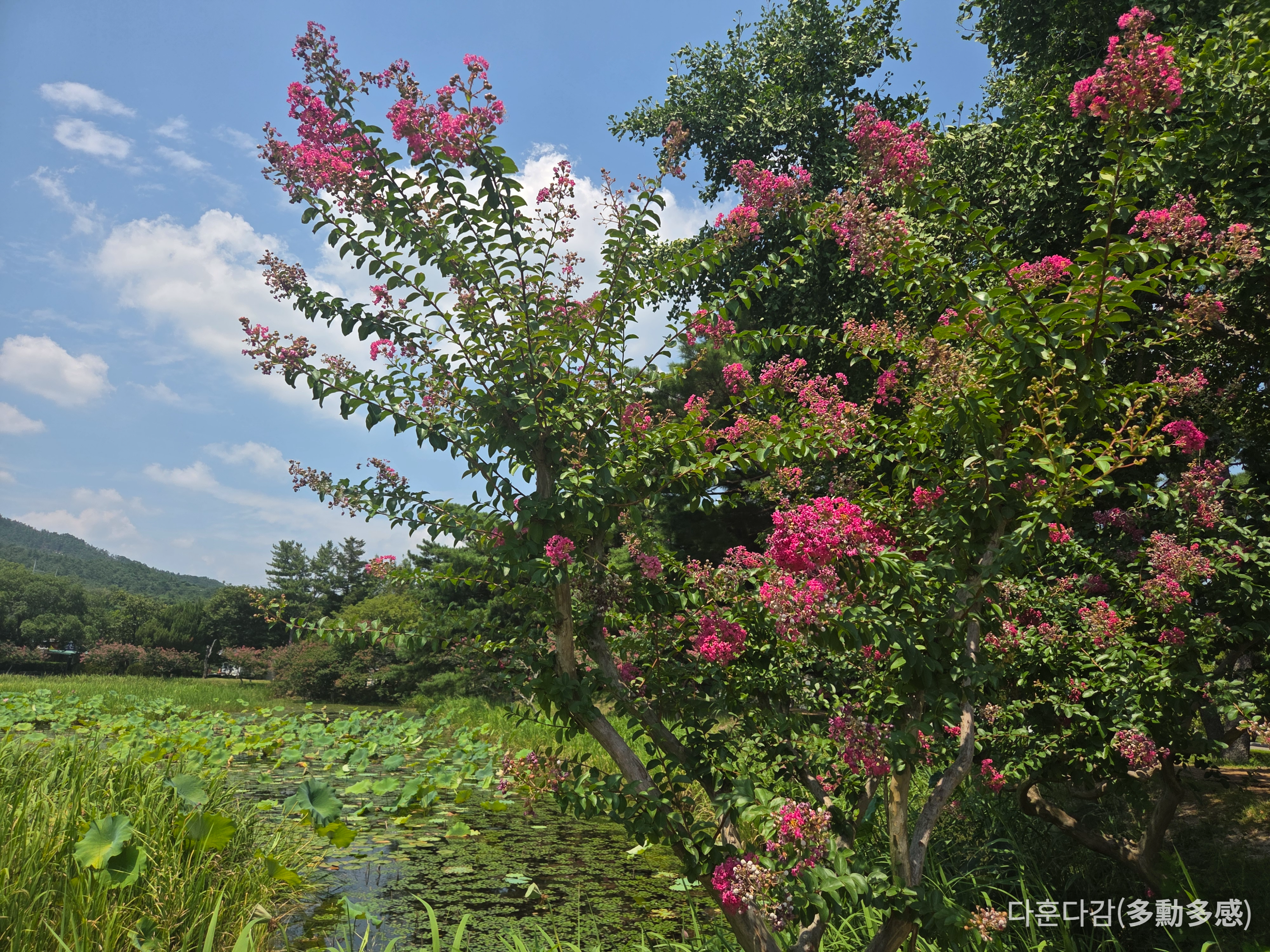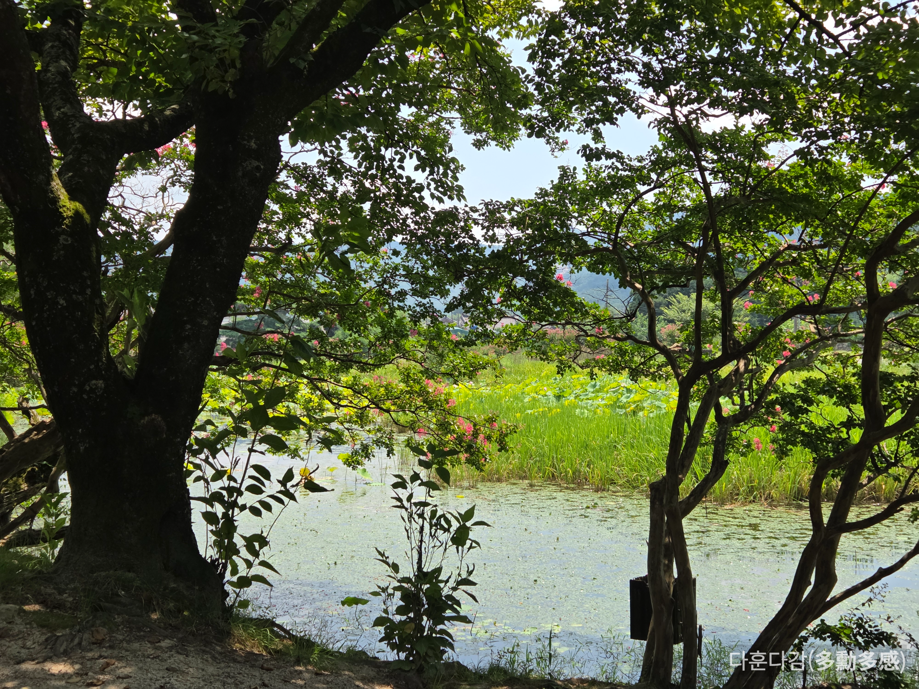 5분이면 한바퀴를 돌 수 있을만큼 작은 연못이지만 조용한 분위기와 소나무, 배롱나무 그리고 연꽃이 어우러져 왠지 모르게 마음이 편안해지는 곳입니다.