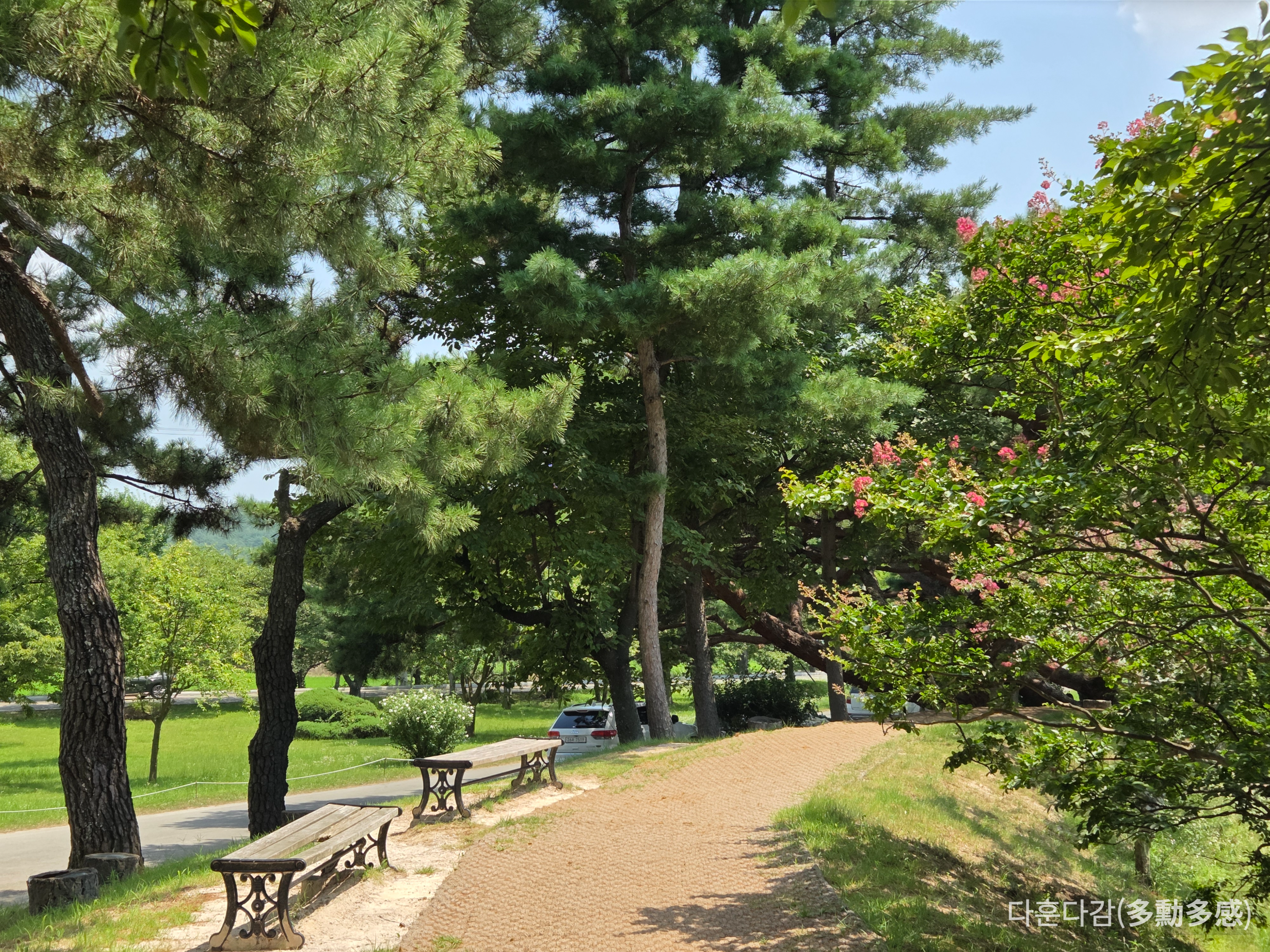 작은 연못을 둘러 벤치가 있고, 배롱나무꽃이 심어져있습니다. 연못에는 연꽃이 있어 여름철이 가장 아름다운 곳인 것 같습니다.