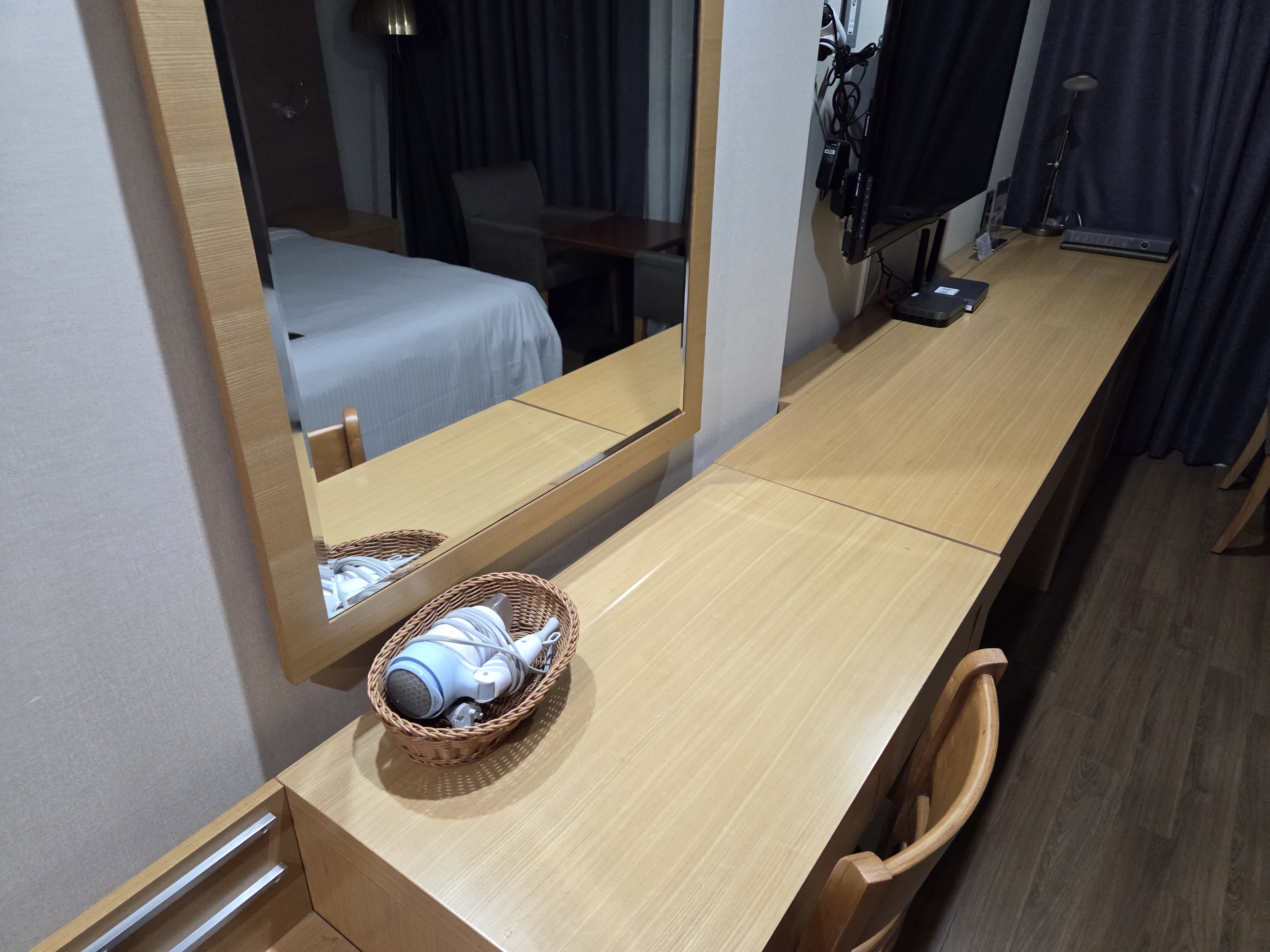 넓직한 화장대와 짐을 놔둘수있는 공간도 있습니다. 리모델링하거나 새로 생긴 주변 모텔과 가격은 비슷한데 공간적으로는 GG호텔이 좀 더 편리한 것 같습니다.
