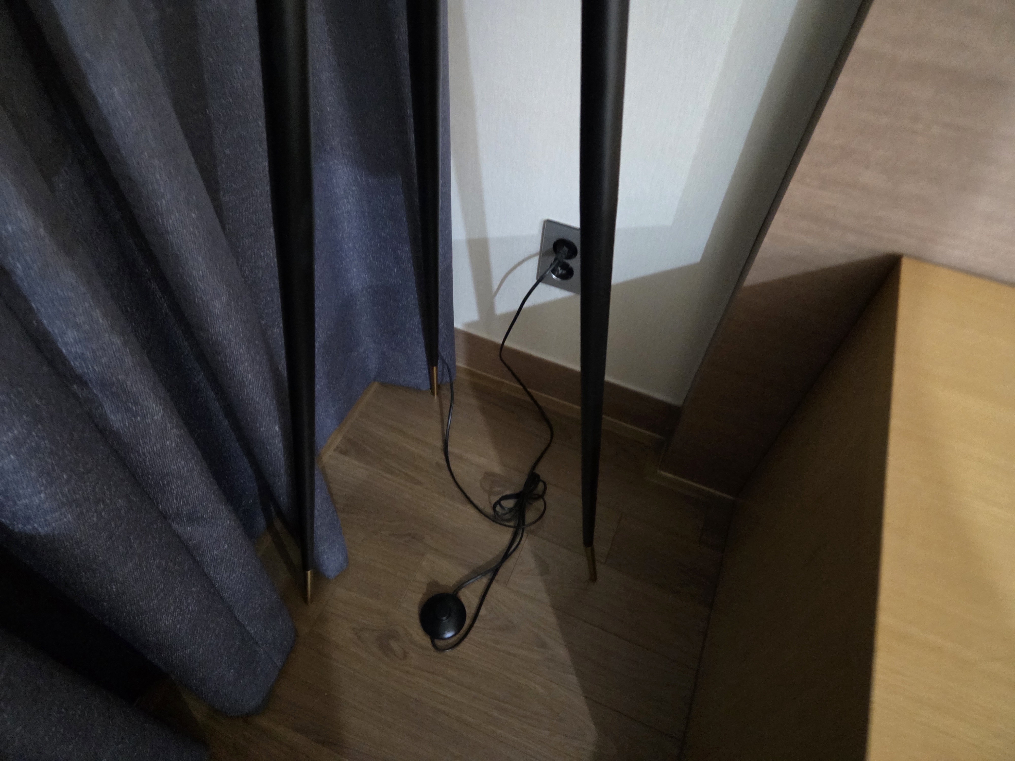 티비 우측과 침대 좌측 스탠드 아래, 침대 우측 전화기 옆에 콘센트가 있어 침대에 누워 핸드폰을 충전하기도 좋았고 여러 기기들 충전하기에 편리했습니다.