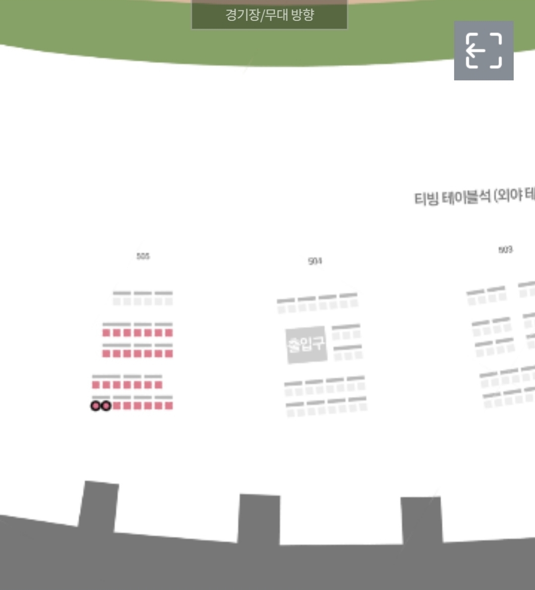 오늘 소개드릴 자리는 가장 좌측 505구역 맨 뒤쪽, 6열입니다.