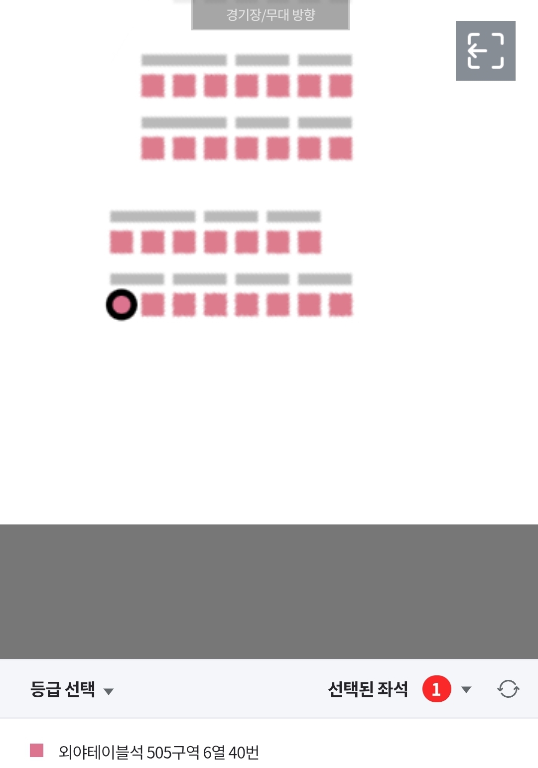 오늘 소개드릴 자리는 가장 좌측 505구역 맨 뒤쪽, 6열입니다.