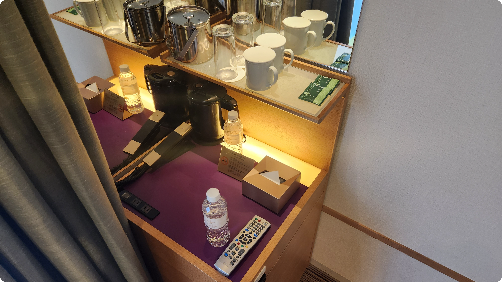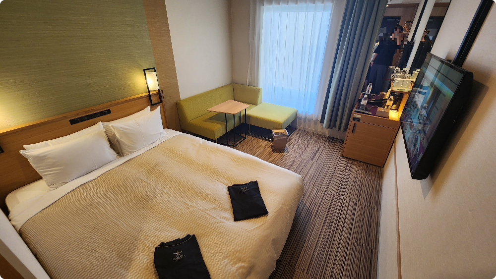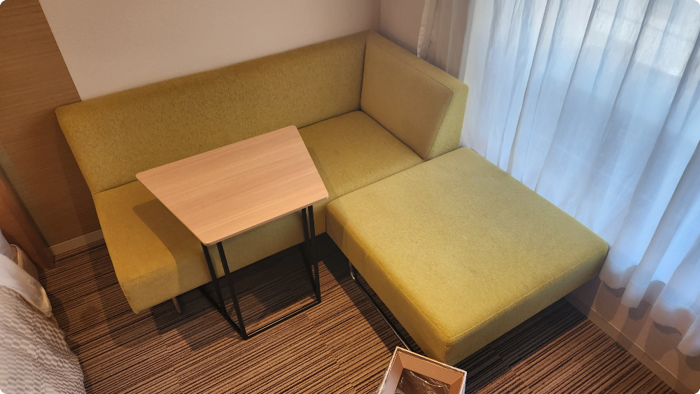 일반적으로 일본 호텔들이 조금 작은 경향이 있는데요, 칸데오 호텔 오사카 수페리어 퀸 룸은 소파와 소파테이블이 있어 방 안에서 쉬기도 좋고 간단하게 식사를 하거나 야식을 먹기에도 좋았습니다.