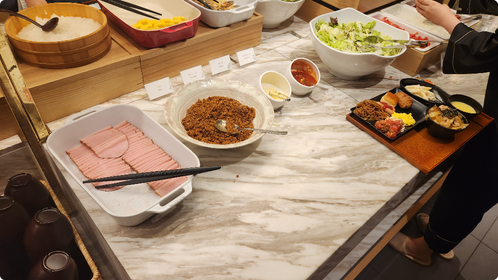 훌륭한 접근성과 대욕장뿐만 아니라 칸데오 호텔 오사카 난바의 조식도 이곳의 또 하나의 장점입니다.