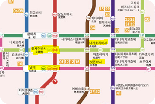 이렇게 보면 조금 복잡해 보일수도 있는데요, 많이들 이용하시는 오사카 주유패스 이용이 가능한 노선들이라 목적지에 따라 노선을 선택해서 이용하시면 됩니다.