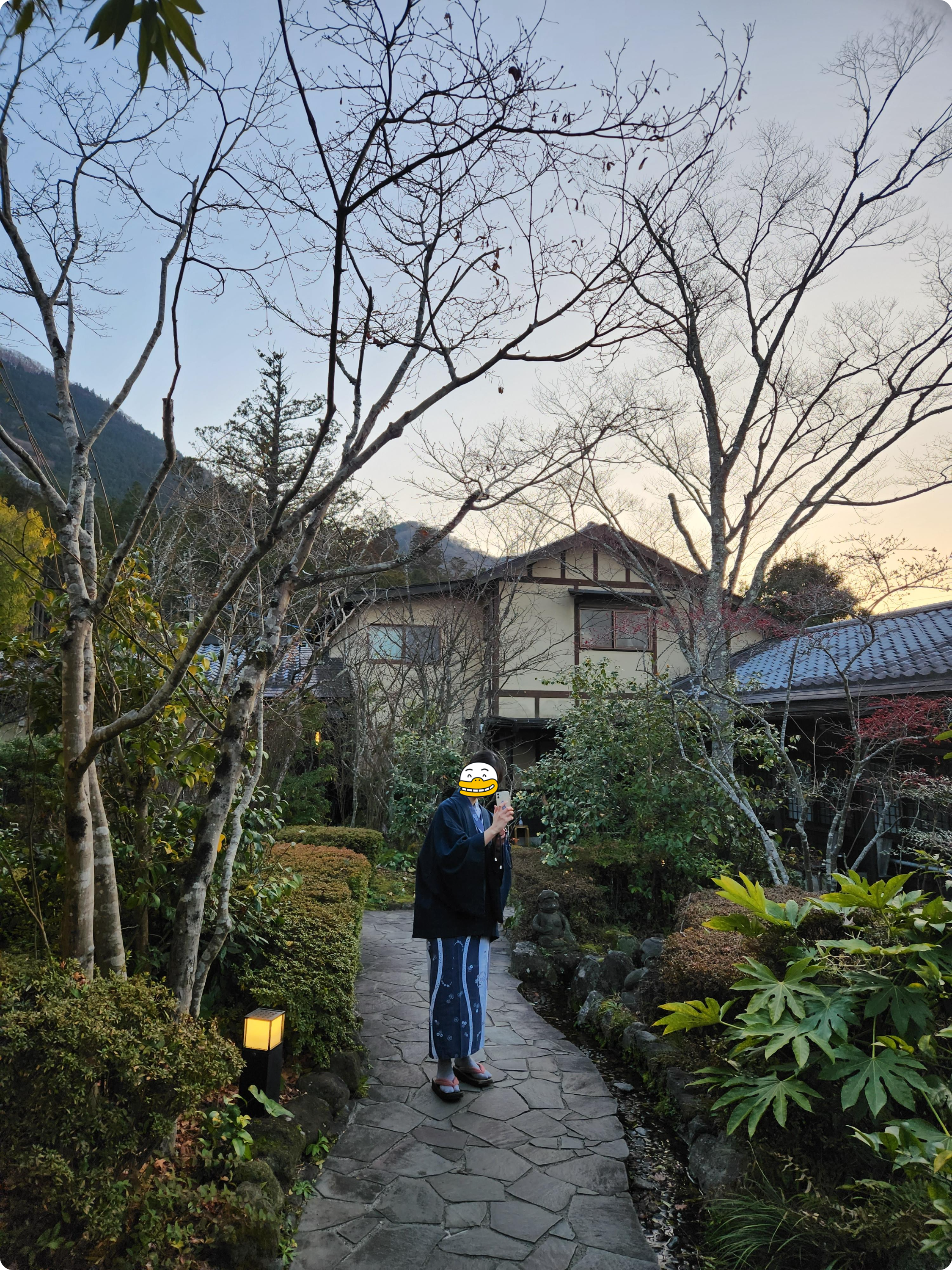 료칸답게 유카타를 제공해주는데요, 정원에서 유카타를 입고 사진을 찍기에도 좋았습니다.