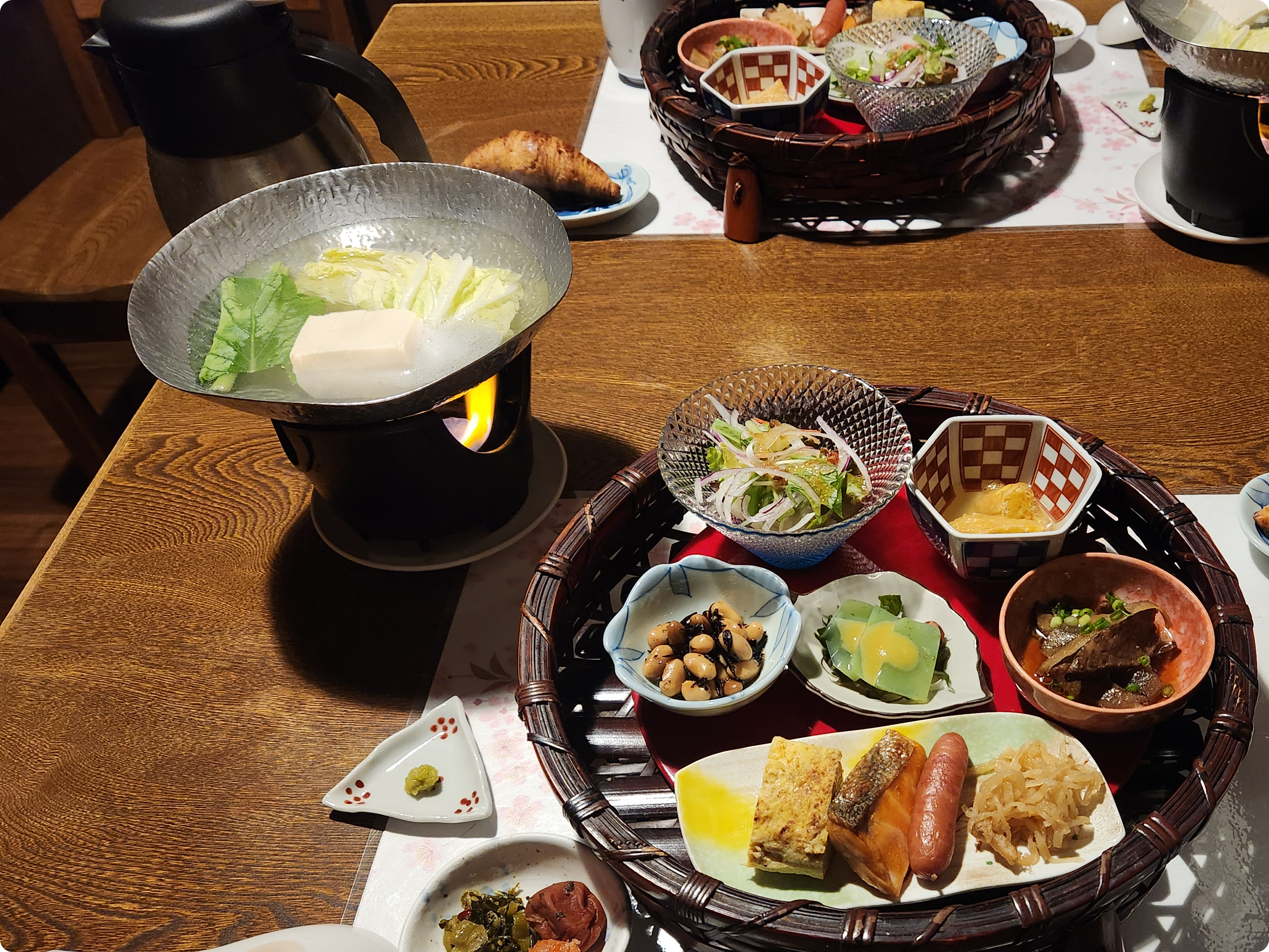 식사는 지역 농산물을 활용한 식사가 코스로 제공되고 계절에 따라 메뉴는 바뀐다고 합니다.