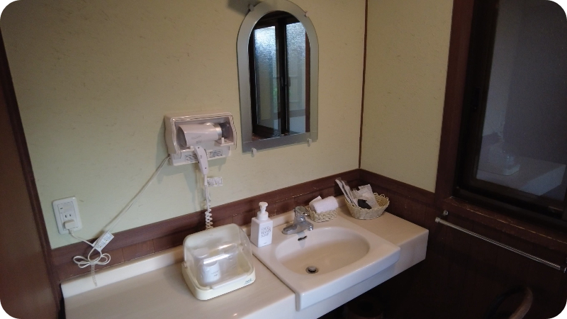 메인방을 지나면 세면대가 있고 세면대 맞은 편에 노천탕이 있습니다.