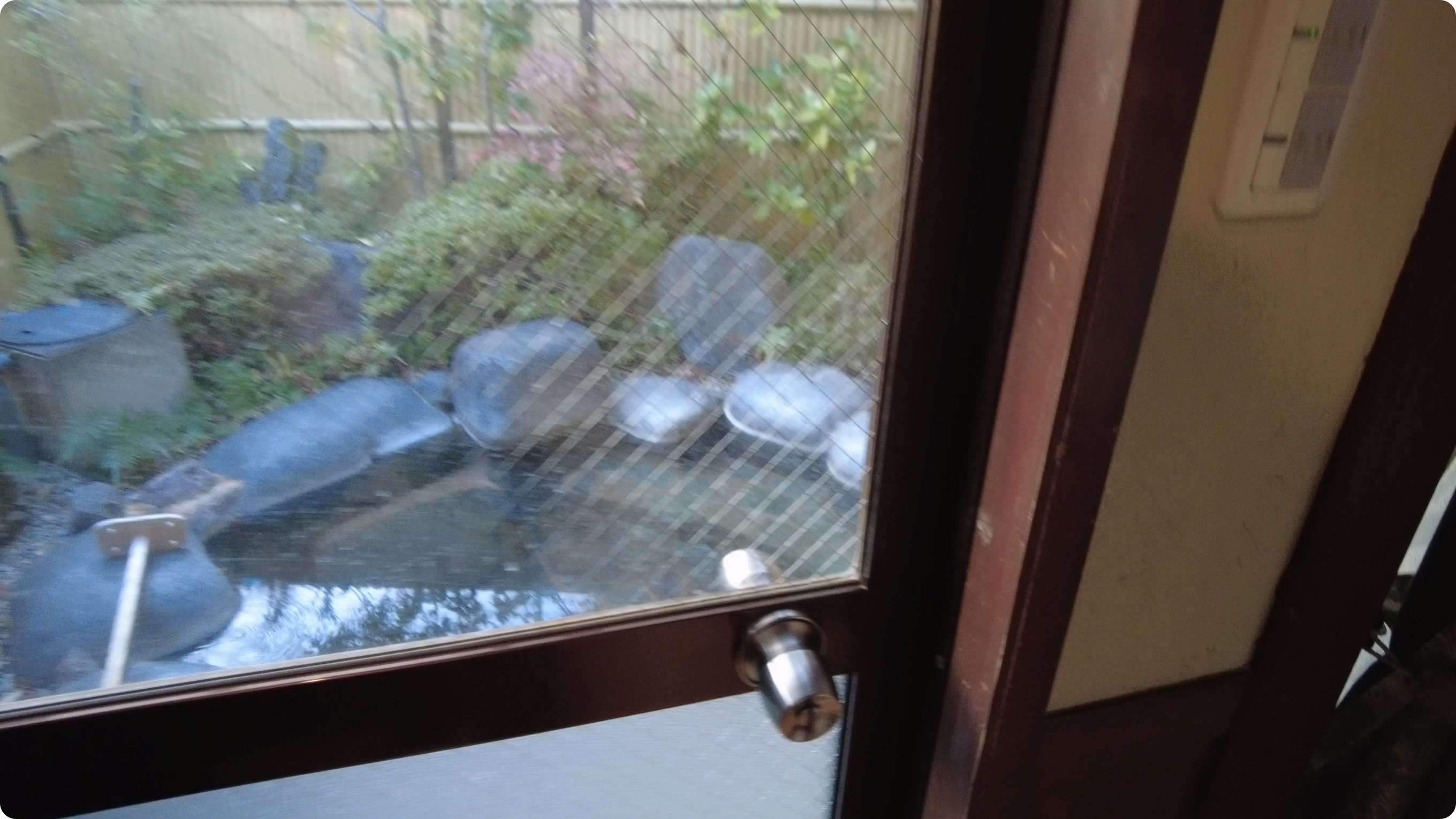 노천탕 주변은 대나무 벽으로 막혀있는데요, 방에 따라 다르겠지만 이쪽 방은 료칸의 정원쪽이였습니다.