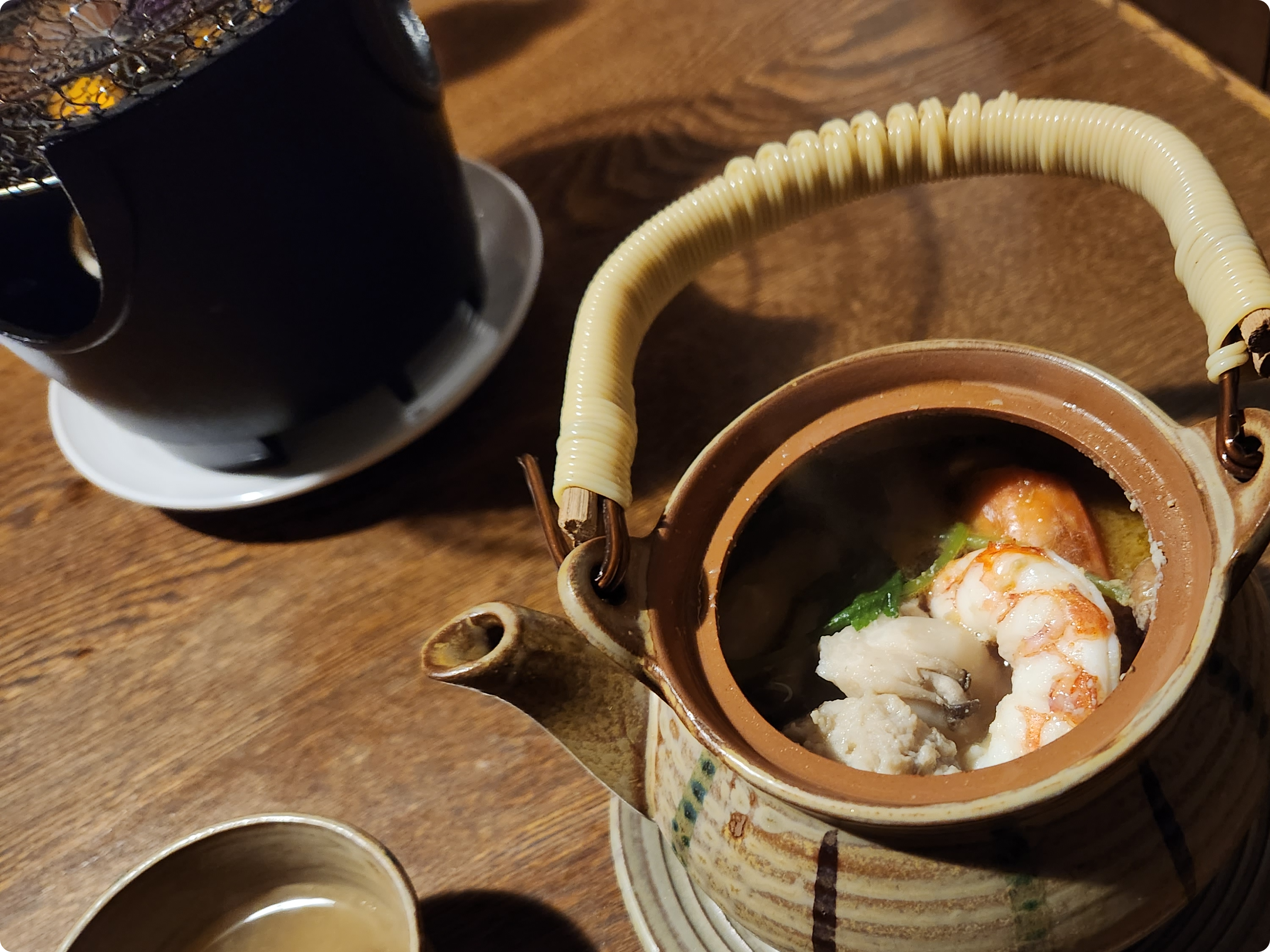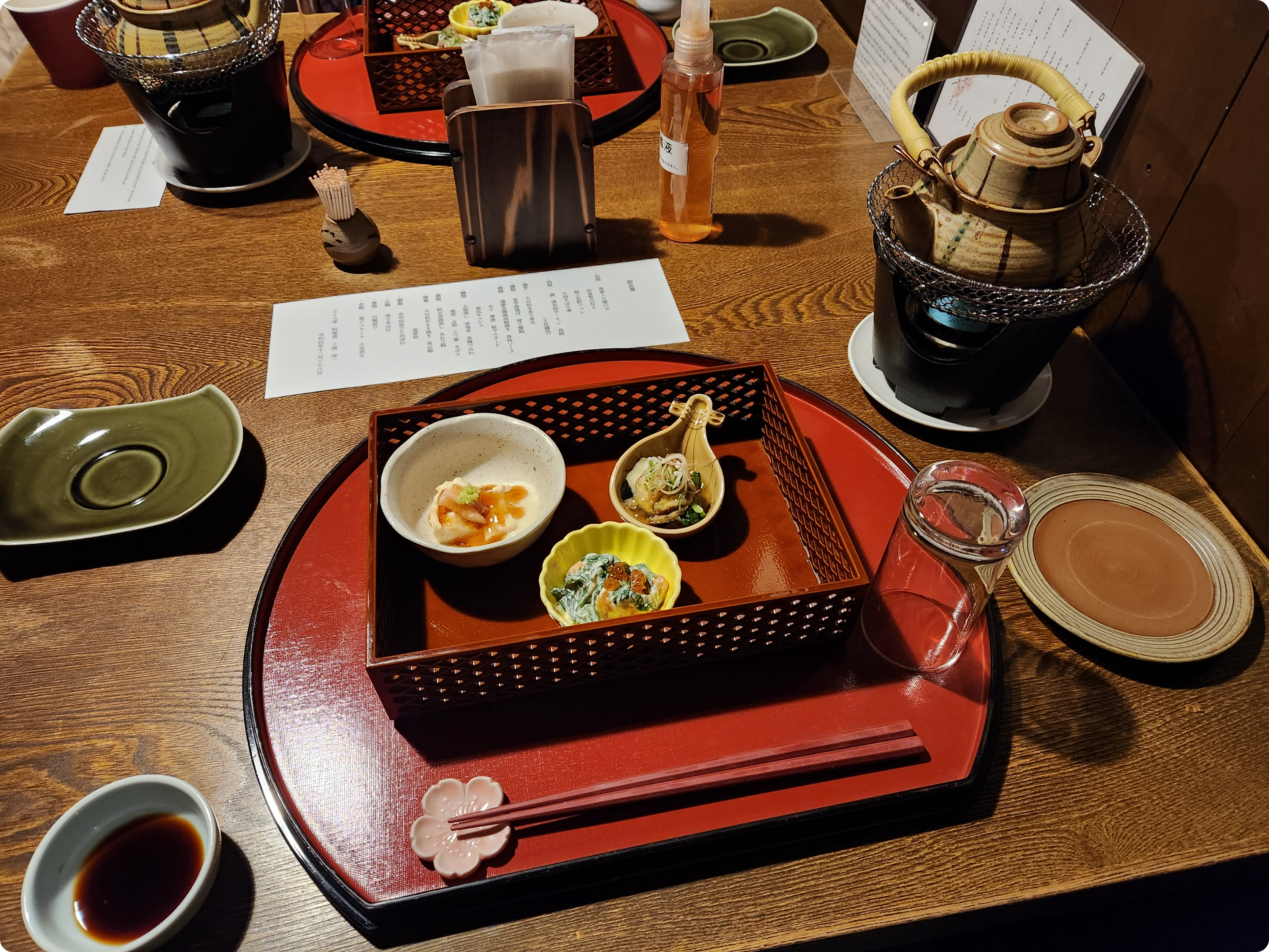 야채, 회, 찜 등등 다양한 요리들이 조금씩 나왔고 마지막에는 스키야키와 함께 밥이 나와서 꽤 배부른 저녁식사 였습니다.