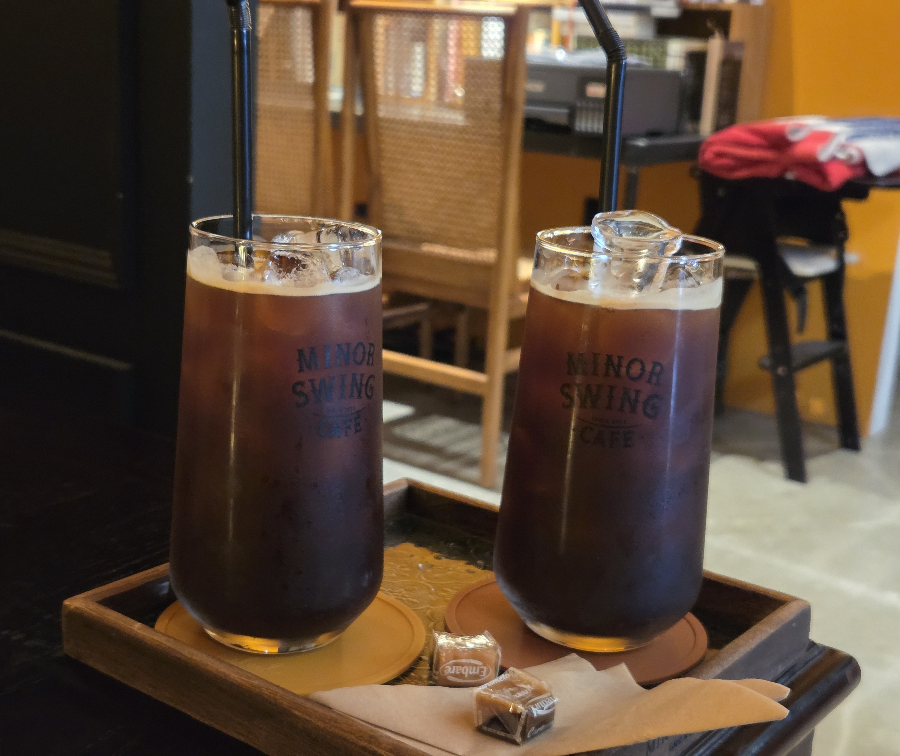 저희는 아메리카노를 마셨는데요, 커피잔부터 쟁반까지 마이너스윙 로고가 들어가있어 사장님의 세심함이 느껴졌습니다.